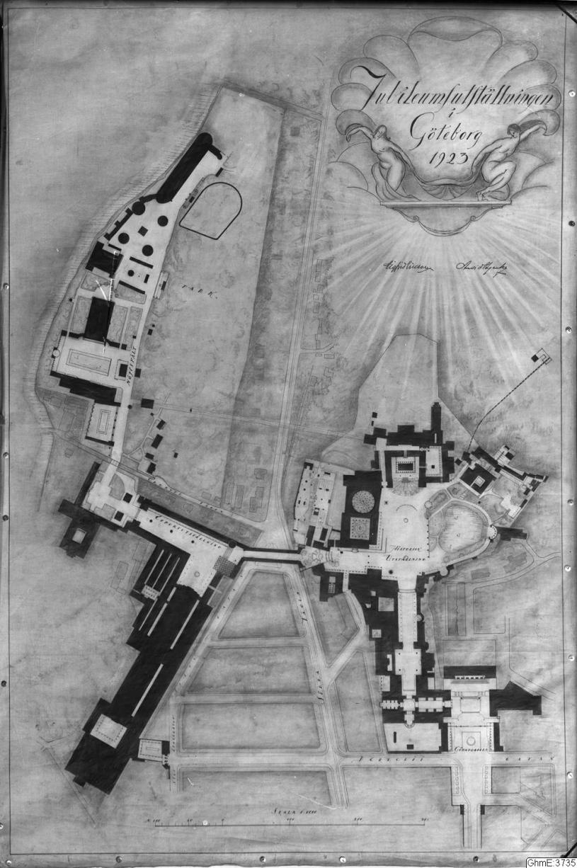 Bilden i sidhuvudet är hämtad från Göteborgs stadsmuseum, Carlotta: Karta över utställningsområdet för Jubileumsutställningen 1923. Kartan utförd i nord/sydlig riktning. Nedre delen visar Göta Platsen, Berzeliigatan och Exportutställningen. Norrut ligger historiska utställningarna. Till vänster om dessa syns parkområden och nöjesfält.