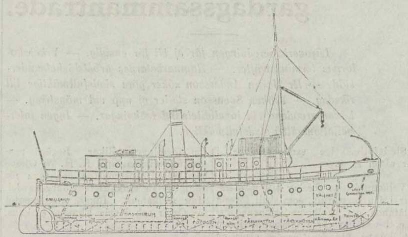 Fartyget, som bygges enligt rakspantsystem, varigenom stor enkelhet i byggandet uppnås, får följande huvuddimensioner: längd över allt 26 m., största bredd på spant 5,5 m. och mallat djup 3,3 m.