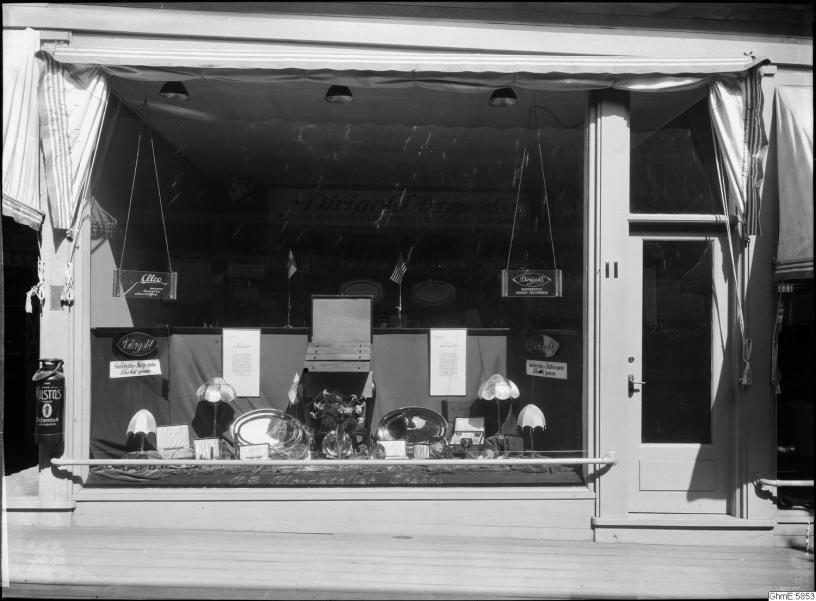 Bilden i sidhuvudet är hämtad från Göteborgs stadsmuseum, Carlotta: Skyltfönstret hos AB Alcometallers butik med utställning vid Viadukten, år 1923.