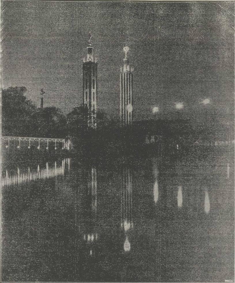 Bilden i sidhuvudet är hämtad ur Göteborgs Handels- och Sjöfartstidning 9 maj 1923 och visar utställningsminareterna i kvällsbelysning.
