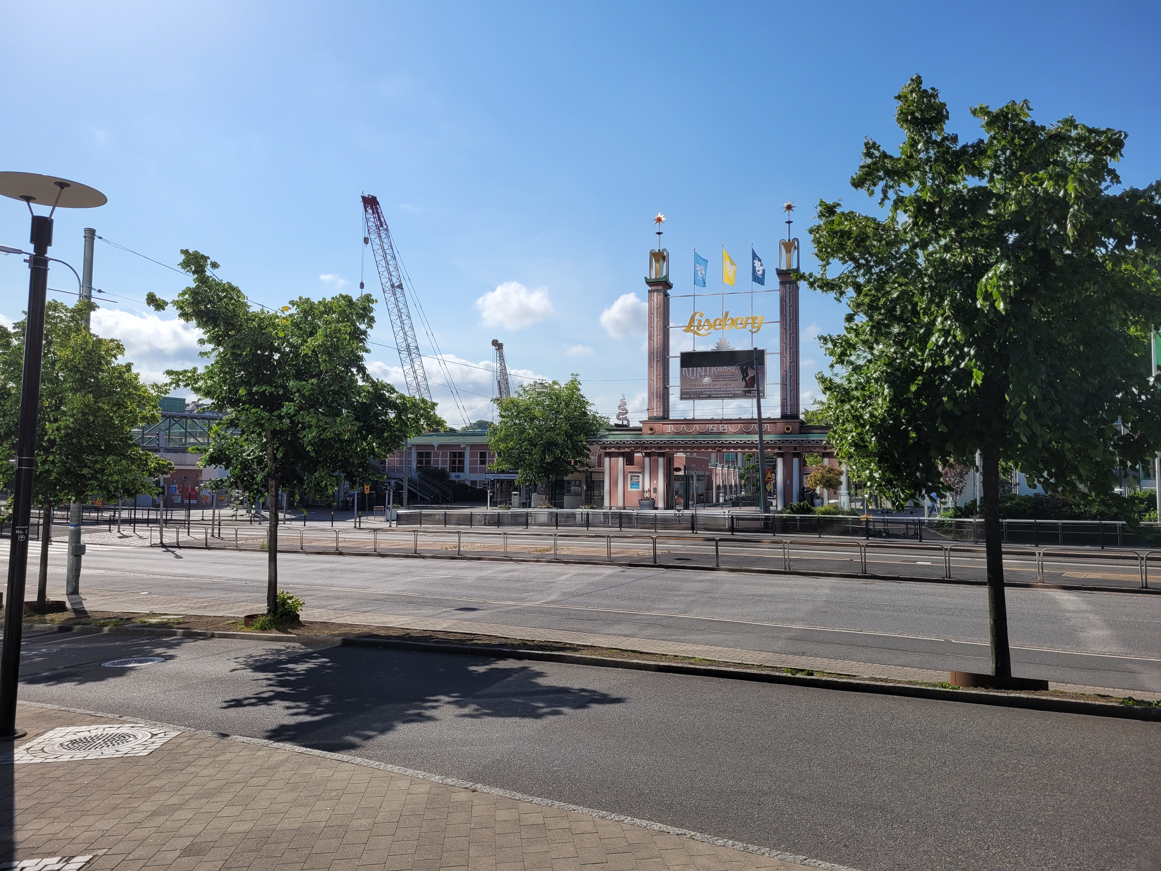 När Nöjesfältet öppnade sina portar 1923 hade entrén inte några likheter med dagens. Bilden från 1923 visar ett ”hål i väggen” in till alla nöjena i den nya parken. Den höga väggen in mot Nöjesfältet som vi ser på bilden döljer Örgryteviadukten som höjde upp Örgrytevägen så att besökarna skulle slippa korsa en väg och givetvis hålla sig inom utställningsområdet.