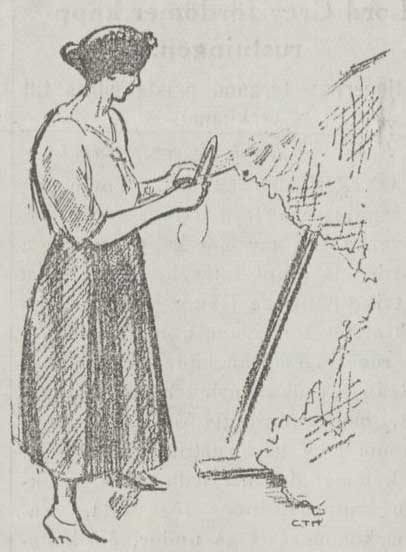 Återvänder till Majornas Elementarläroverk för fiskare och erhåller ett meraftonsmål av vårspillånga, sommarspillånga, höstspillånga samt – till efterrätt – vinterspillånga. Efter att ha förgäves sökt fatta nätbinderskornas kvicka arbete, som går alldeles för fort, utföres ännu ett besök i fiskerimässans konstavdelning, vilket bekräftar den vetenskapligt välgrundade meningen, att människorna måste äta mycket fick och därtill ofta. Ät fesk. Hm.” (Ur: Göteborgs Handels- och Sjöfartstidning 13 juli 1923)