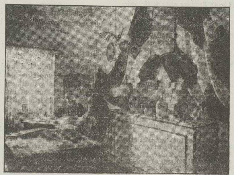 ”De Danska Statsbaners og Turistforeningen for Danmarks Oplysnings- og Turistbureau är inrymd i längan uppe till höger på Götaplatsen, i samma flygel som inkvarteringsbyrån. Byråns uppgift framgår tydligt nog av namnet, men naturligtvis är verksamheten icke inskränkt till att omfatta bara statbanorna. Byrån är ej heller inrättad uteslutande för de danskar, som göra sommarbesök i utställningsstaden och önska informationer om förhållandena här. Ej minst svenskarna själva ha här tillfälle att inhämta de bästa upplysningar rörande resor i det vackra broderlandet i söder, som inom sitt lilla område rymmer en sådan myckenhet av vänlig natur och fin kultur.