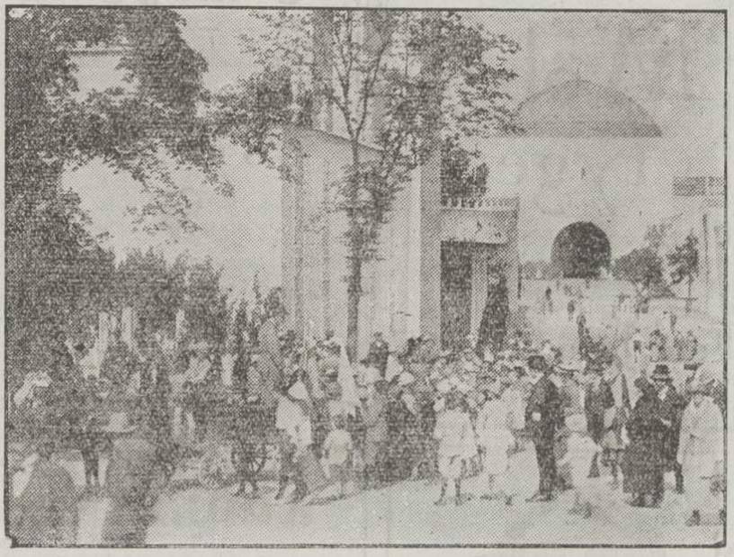”Sago-Greta har nu också inbjudit Göteborgs många parkbarn till ett besök på Barnens Paradis å utställningen. Då inte alla kunde komma på en gång, fick man lov att dela upp dem i olika grupper, och den första på bortåt ett par hundra barn gjorde i dag under parktanternas ledning sitt intåg i Paradiset.