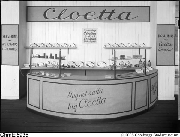 Bilden i sidhuvudet är hämtad från Göteborgs stadsmuseum, Carlotta: Firmautställning: Aktiebolaget Cloetta, Ljungsbro 1923.