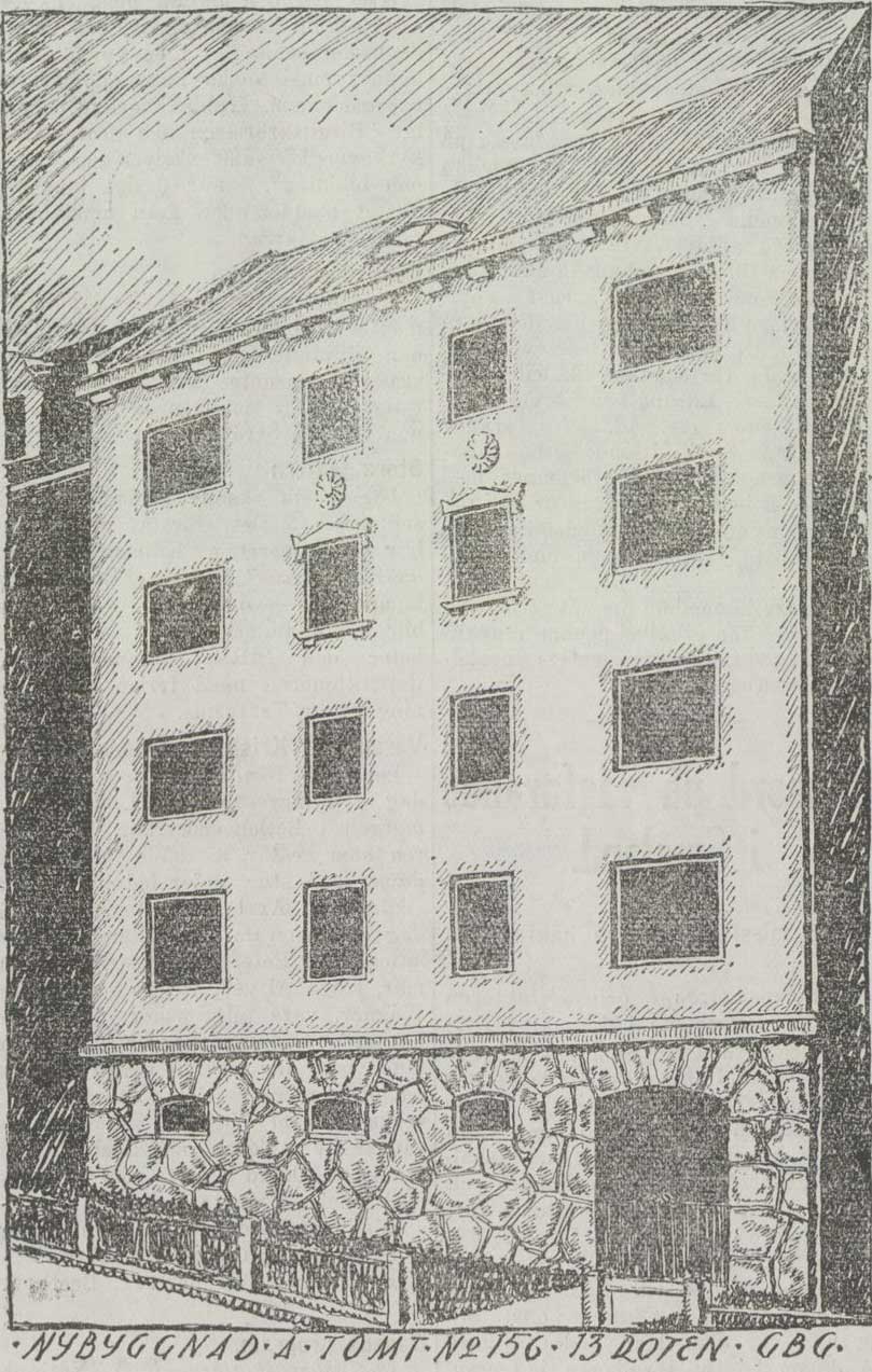 Bilden här ovan visar den enkla och tilltalande fasaden av ett fyravåningars bostadshus av sten, Erik Dahlbergsgatan 21, vars ritningar byggnadsnämnden godkände vid sitt senaste sammanträde. Huset, som äges och uppföres av arkitekt Nils Olsson, innehåller fyra lägenheter om fyra rum och kök – en lägenhet i varje våning alltså. Våningarna äro utrustade med allt vad till modern bekvämlighet och komfort hörer. Grundläggningsarbetena äro redan påbörjade, och det hela beräknas vara färdigt till den 1 januari 1924.