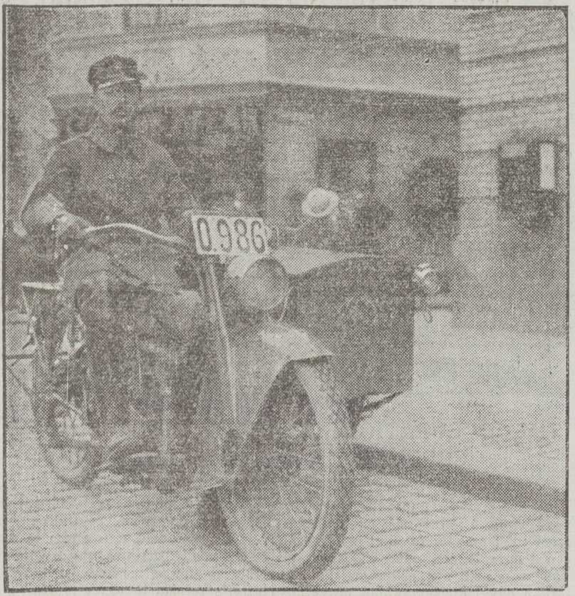 ”I dag har en ny företeelse dykt upp i gatubilden, i det postverkets nya motorcyklar för första gången kommit till användning. Man har dock icke bevarat den traditionella gula färgen, på vilken det förr alltid var lätt att känna igen postverkets fortskaffningsmedel på långt håll, utan motorcyklarna äro hållna i en ganska mörk, brungrön färgton. Lådan, i vilken breven tömmas och förvaras, är 150 cm. lång och 60 cm. bred och gör ett solitt och rymligt intryck. Hela systemet såg för övrigt ut att fungera snabbt och behändigt vid starten utanför brevlådan på museum i dag kl. 12.