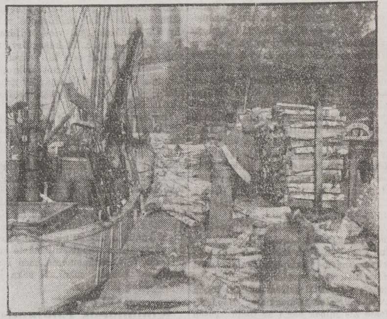Bilden i sidhuvudet visar lossningen av veden, hämtad ur Göteborgs Handels- och Sjöfartstidning 17 oktober 1923.