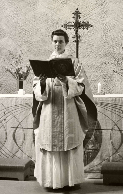 Bilden i sidhuvudet är hämtad från Digitalt museum, kvinnlig präst vid altaret.