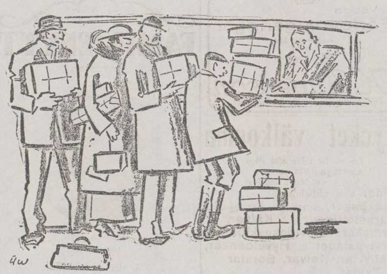 Bilden i sidhuvudet visar rustningen på posten med de sista julpaketen, ur Göteborgs Handels- och Sjöfartstidning 22 december 1923.