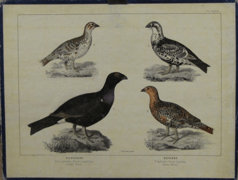 Bilden i sidhuvudet är hämtad från Digitalt museum: Skolplansch som visar rackelhane och riporre.