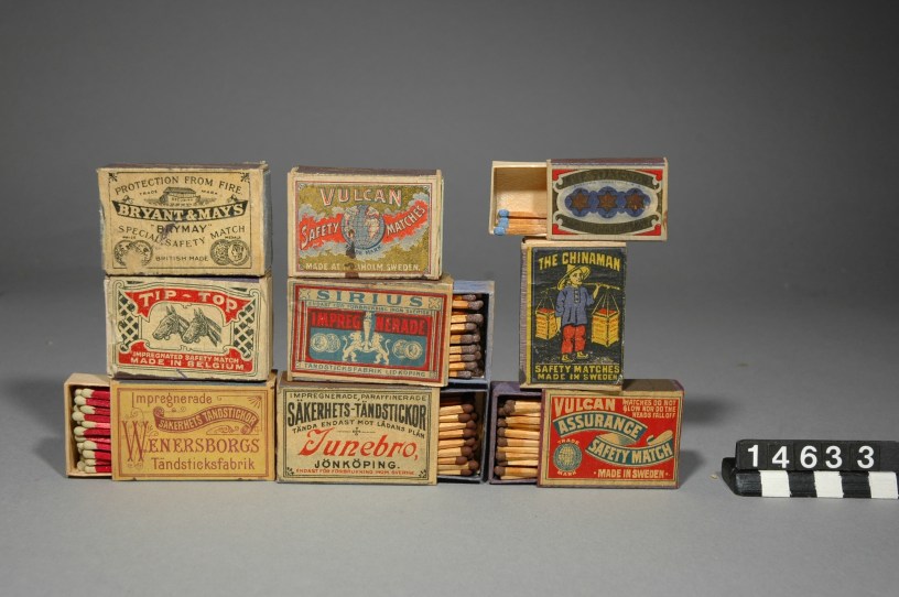 Bilden i sidhuvudet visar exempel på tändsticksaskar och är hämtad från Digitalt museum.
