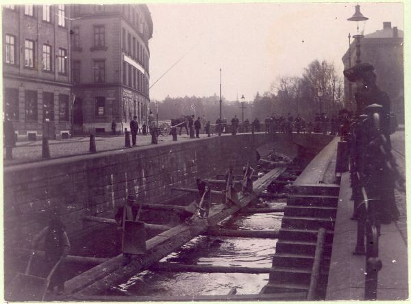 ”Vår ’kanalfråga’ ser vederbörande beredning icke så pesimistiskt som d:r von Sydow. Som förut nämdt har den afstrykt hr von S:s motion om att frågor, som angår brobyggnad öfver Vallgrafskanalen, hvilka ställts i samband med den nu pågående igenfyllanden af Västra hamnkanalen, måtte uppskjutas till dess tillräckligt erfarenhet vunnits om den invärkan på vallgrafsvattnets beskaffenhet som kan blifva följden af samma kanals igenfyllande.