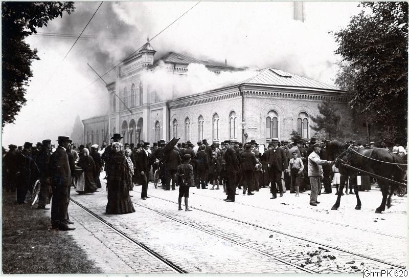 Bilden i sidhuvudet visar branden i Renströmska badanstalten 1903, hämtad från Göteborgs stadsmuseum, Carlotta.