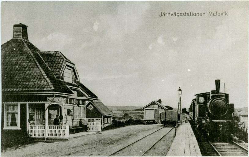 Bilden i sidhuvudet visar Maleviks hållplats 1906, hämtad från Digitalt museum.