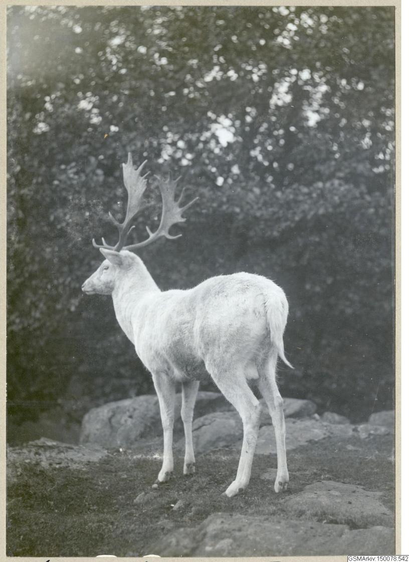 Bilden i sidhuvudet visar en hjort i Slottsskogen d. 4 Okt 1913. Hämtad från Göteborgs stadsmuseum, Carlotta.