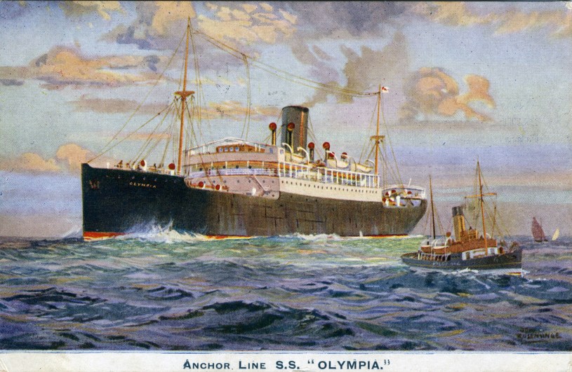 Bilden i sidhuvudet visar Anchor Line S.S. ”Olympia.”. Hämtad från Digitalt museum.