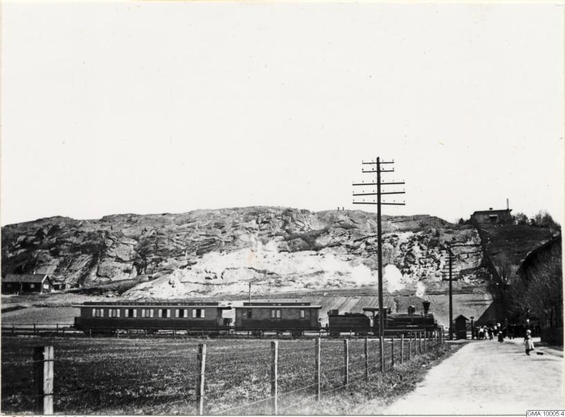 Bilden i sidhuvudet visar Gårda, Örgryte: Dämmevägen mot Västkustbanan. I fonden Överåsberget, år 1895. Hämtad från Göteborgs stadsmuseum, Carlotta.