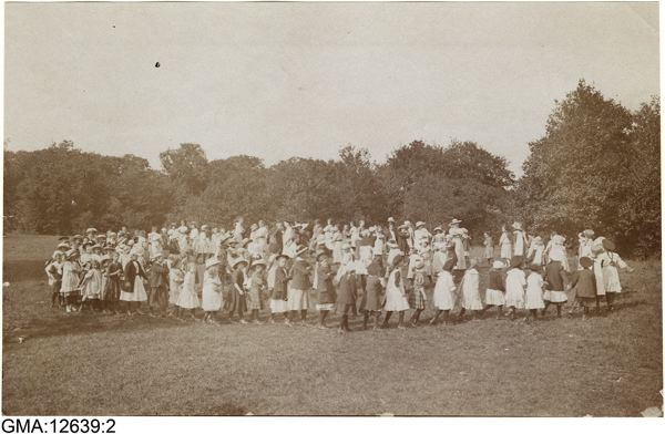 Sällskapet för friluftslekar, som har all heder af sina anordningar för utflykterna, har rönt uppmuntran i denna värksamhet genom frikostiga gåfvor från flera handelsfirmor och enskilda personer. Så är skyddshuset till största delen bekostadt genom medel, som för ändamålet skänkts, flaggan är en gåfva af hrr Axel Gillblad & Co., och redan förut har nämnts hurusom firmorna Pellerin och Direkt samt Göteborgs ångbageri visat sin frikostighet mot sällskapet.” (Ur: Göteborgs-Posten 22 juli 1904)