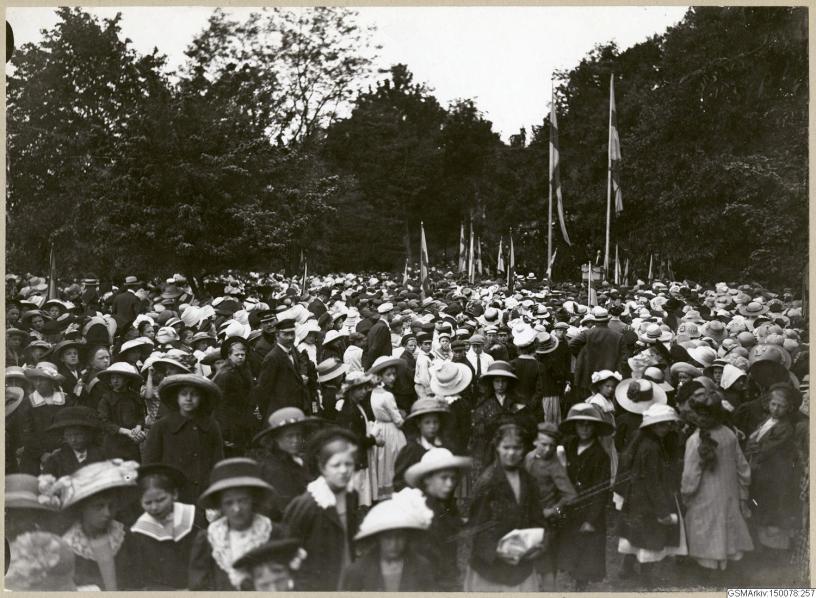 Bilden i sidhuvudet visar skolbarn i Slottsskogen som firar Svenska flaggans dag, 6 Juni 1913. Hämtad från Göteborgs stadsmuseum, Carlotta.