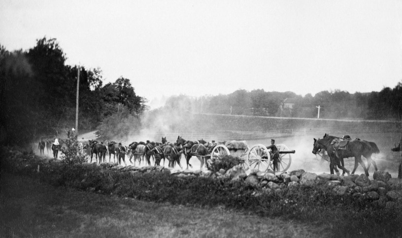 ”Ovanlig liflighet råder här för närvarande. Sedan en mängd hästar anländt från landet till de vid regementet förut varande, har nämligen körningen med kanoner i terrängen tagit sin början. Beväringsmännen få sålunda känna på, huru det är att hålla sig på kanonlavetterna under en stundom mycket rask färd i markerna.