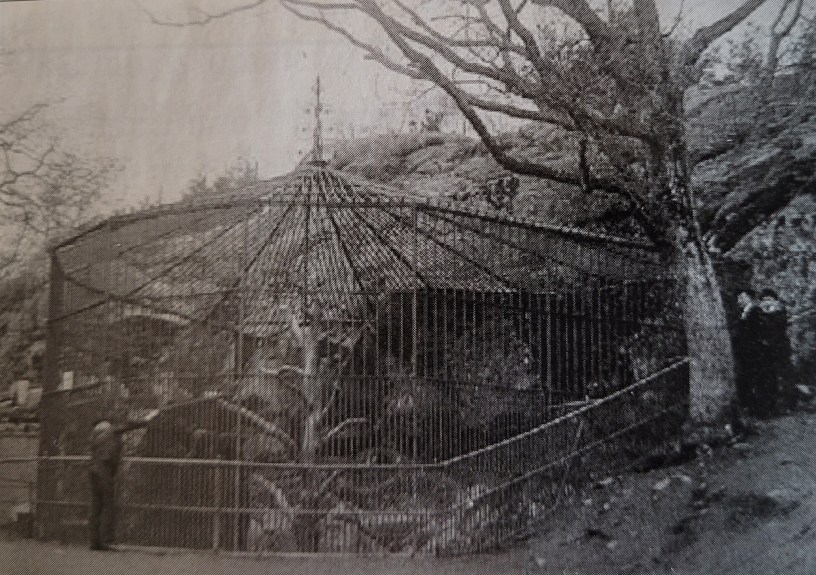 Bilden i sidhuvudet visar björnburen 1912, det står en person med armen genom gallret! Bilden är hämtad ur Historiska museets arkiv, återgiven i Fredriksson, Stig, Slottsskogens ljuvligheter: nya vandringar med NaturStig, NaturStigs nyttigheter, Göteborg, 2008, s. 10.