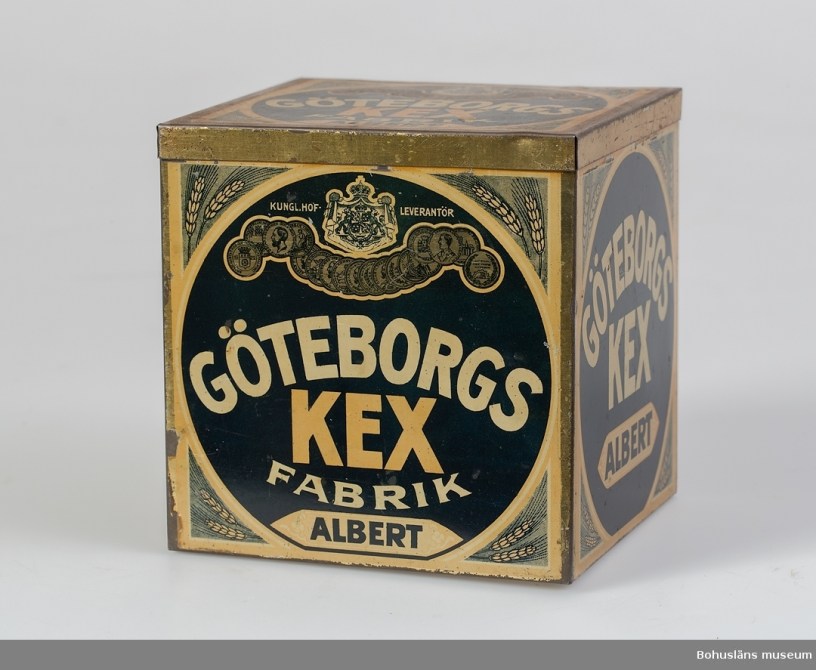 Bilden i sidhuvudet visar förpackning för den saltade kexsorten Albert. Hämtad från Digitalt museum.