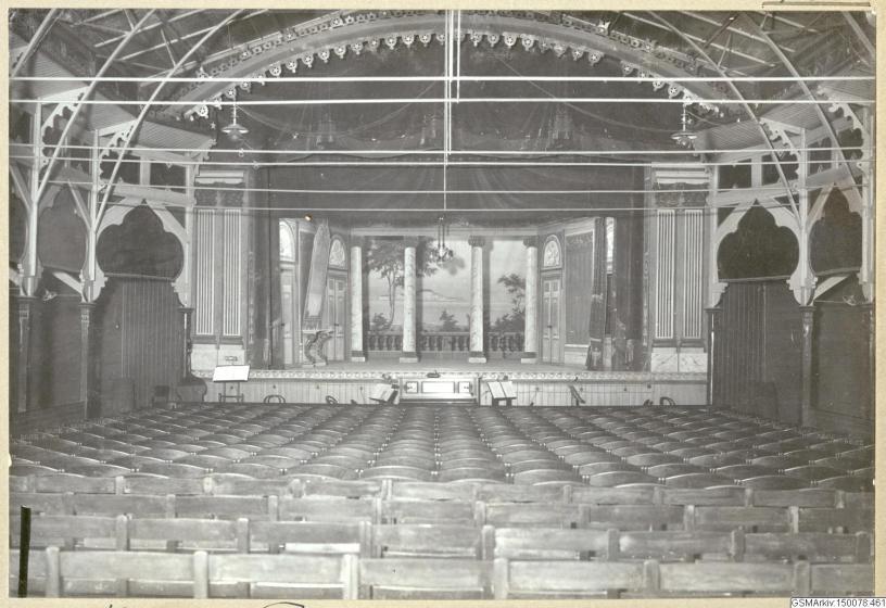 Vid de brädväggar, som skilja salongen och klädlogerna, komma ock rör, liknande dem som bilda apparatens galler, att placeras.” (Ur: Göteborgs-Posten 26 augusti 1904)