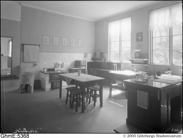 Bilden i sidhuvudet visar ett skolkök från 1923, hämtad från Göteborgs stadsmuseum, Carlotta.