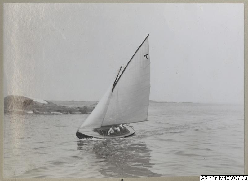 Bilden i sidhuvudet visar en helt annan segelbåt än den som omnämns i dagens artikel, det är G.K.S.S. segling. ”Trollet” rundar ärnan 1912. Hämtad från Göteborgs stadsmuseum, Carlotta.