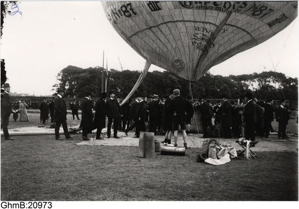 Bilden i sidhuvudet visar Ballongflygning, troligen på Idrottsplatsen, eventuellt under 1890-talet. Hämtad från Göteborgs stadsmuseum, Carlotta.