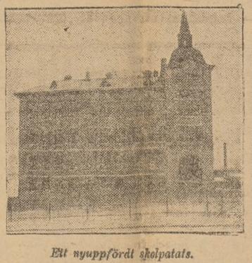 Bilden i sidhuvudet visar ett nyuppfördt skolpalats, hämtad ur Göteborgs-Posten 25 januari 1905.