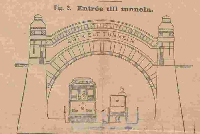 Bilden i sidhuvudet visar en illustration av den tänkta tunnelmynningen, hämtad ur Göteborgs Aftonblad 29 januari 1904.