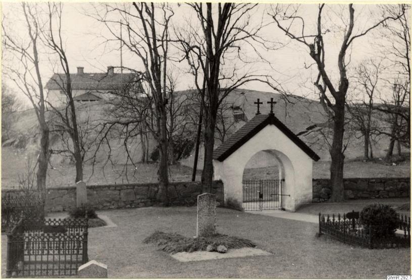 Bilden i sidhuvudet visar Lundby gamla kyrkogård, sedd från Lundby gamla kyrka, med blick mot sydväst och i bakgrunden syns Putsegården år 1948. Hämtad från Göteborgs stadsmuseum, Carlotta.
