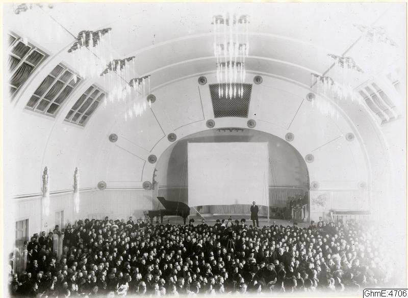 Bilden i sidhuvudet visar konserthuset 1904 under en föreläsning av Sven Hedin. Hämtad från Göteborgs stadsmuseum, Carlotta.