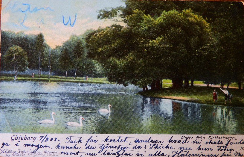 ”Under lång tid har i Slottsskogen den oseden varit rådande, att vid hörnet mellan nya inkörsvägen och vägen rundt stora dammen bränts högar af löf och annat afskräde. Oafsedt det olämpliga uti att hafva afskrädes- och komposthögar intill den mäst trafikerade infartsleden torde dock bränningen af dylika högar på denna plats kunna stämplas som en stor brist på omtanke om de personers trefnad som trafikera Slottsskogen. Som det nu är, kan man vid vissa vindar knappast vistas rundt stora dammen då den af löfhögarnes bränning alstrade röken är rent af kväfvande. Då i lördags vår vackra park var skådeplatsen för den i flere dagar i förväg i tidningarne omtalade corson, ansågo vederbörarande tydligen att detta var en sak som ej angick dem, ty öfver häcken i väghörnet bolmade röken gladeligen hela tiden, till stor förargelse för alla åkande och ridande, som voro tvungna passera rökzonen. Fotgångarne däremot hade det bättre genom att totalt öfvergifa den del af parken, som förpästades af röken, men därigenom skockade de sig så mycket tätare på andra ställen och hindrade ekipagen och ryttarne. Jag är förvissad om, att min framställning kommer att af styrelsen för Slottsskogen beaktas så att komposthögarne flyttas, till glädje för många andra, men mäst för