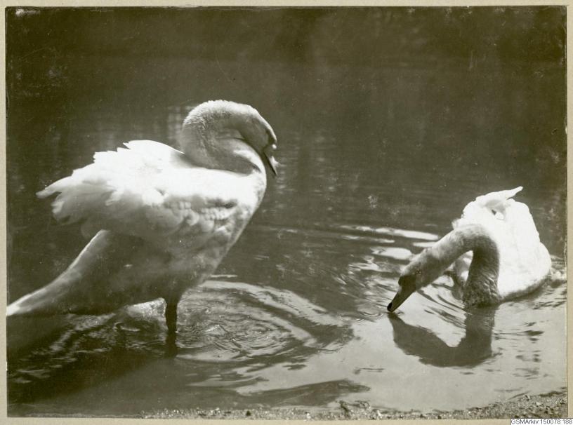Bilden i sidhuvudet visar svanar i lilla Fågeldammen år 1913. Hämtad från Göteborgs stadsmuseum, Carlotta.