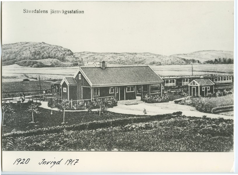 Bilden i sidhuvudet visar Sävedalens järnvägsstation 1920, hämtad från Digitalt museum.