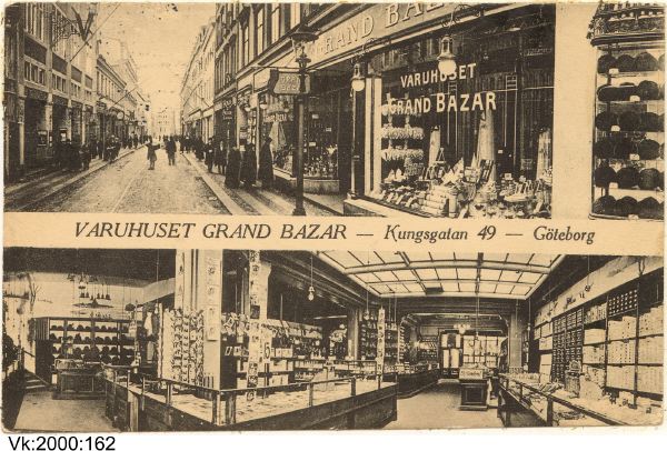 Bilden i sidhuvudet visar ett vykort, från omkring 1918, över varuhuset Grand Bazar, hämtad från Göteborgs stadsmuseum, Carlotta.