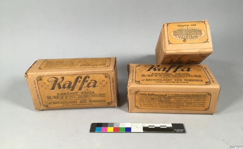 Bilden i sidhuvudet visar kaffesurrogat, tillverkat 1918, hämtad från Göteborgs stadsmuseum, Carlotta.