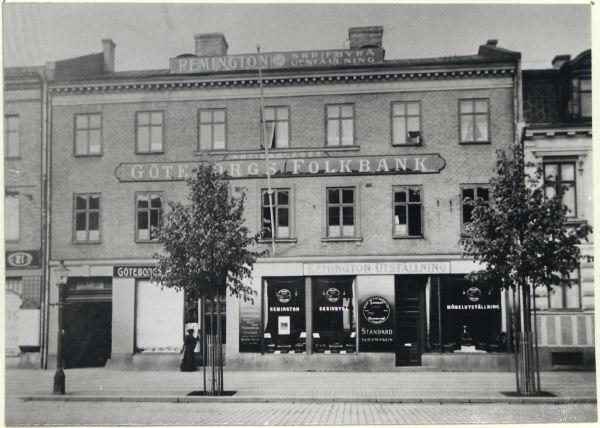 Bilden i sidhuvudet visar Göteborgs Folkbank omkring år 1910, Västra Hamngatan 19, hämtad från Göteborgs stadsmuseum, Carlotta.