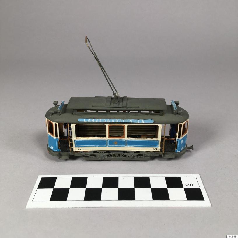 Bilden i sidhuvudet visar en modell av Göteborgs Spårvägars motorvagn 1908, typ M4. Ex 59. Med förare och konduktör. Ljusblå linjeskylt längs taket ”Långedragslinjen”, ljusblå frontskylt ”Järntorget”, akterskylt ”Långedrag”. Hämtad från Göteborgs stadsmuseum, Carlotta.
