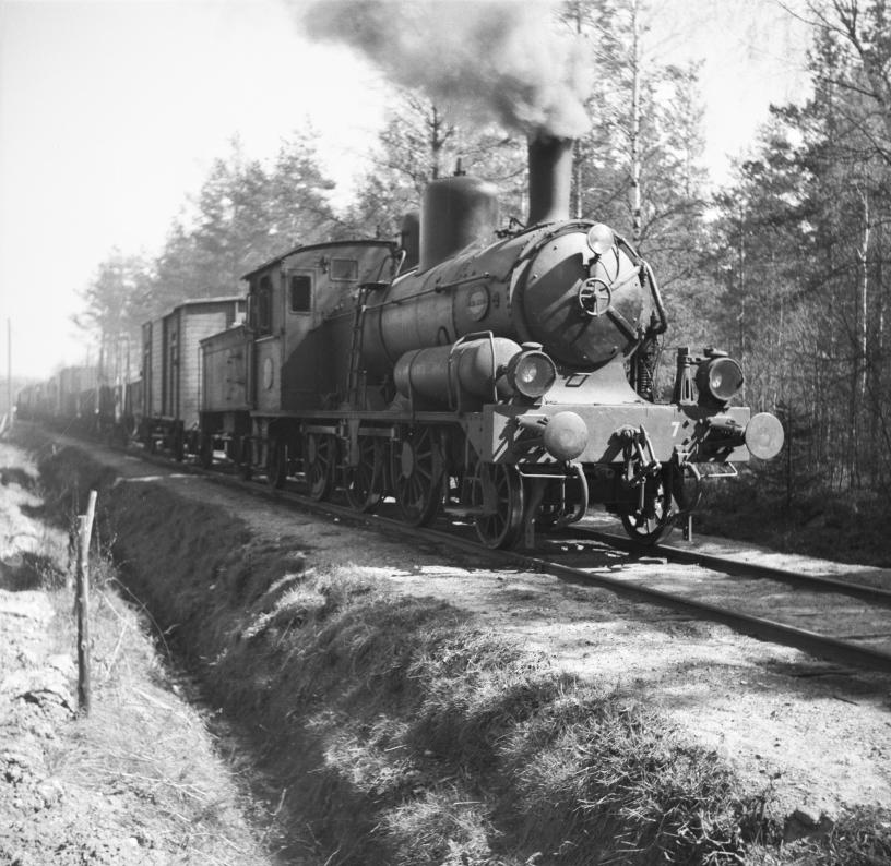 Bilden i sidhuvudet visar ett godståg, Kumla-Yxhults järnväg, hämtad från Digitalt museum.