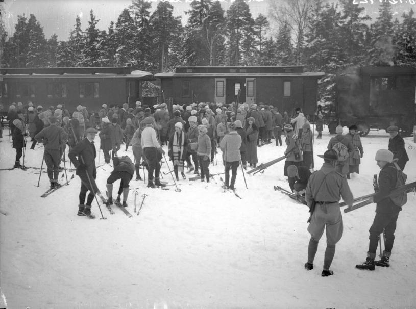 Avfärden skedde på morgonen vid 9-tiden från Bergslagernas station. Där myllrade av pojkar i alla åldrar, samtliga försedda med matpaket och skidor, och en del hade kälkar.