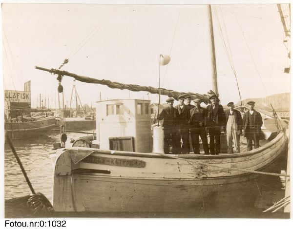 I sidhuvudet visas en bild av ett fiskefartyg, troligen 1920-talet, i Fiskhamnen, hämtad från Göteborgs stadsmuseum, Carlotta.