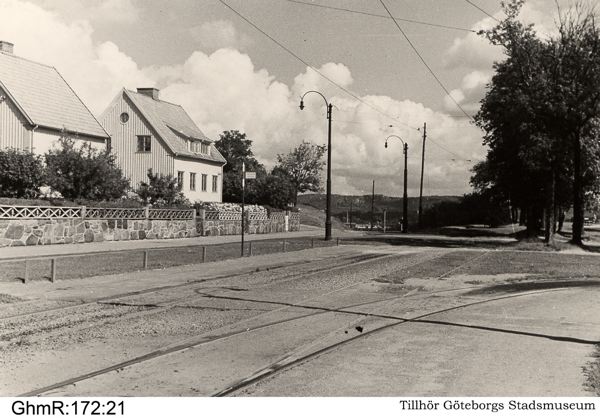Bilden i sidhuvudet visar spårvägsspår invid Härlandavägen 1938, hämtad från Göteborgs stadsmuseum, Carlotta.