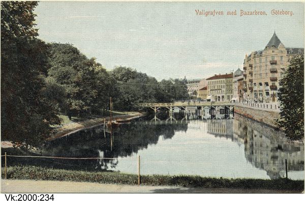 I sidhuvudet visas, vallgrafven med Bazarbron, ett vykort, hämtat från Göteborgs stadsmuseum, Carlotta.